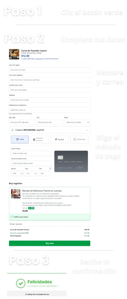 Dale Clic al botón verde de Registrarse y te llevará a la sección de pago, donde colocarás tu nombre y correo electrónico, donde recibirás el acceso al programa en 1 minuto.